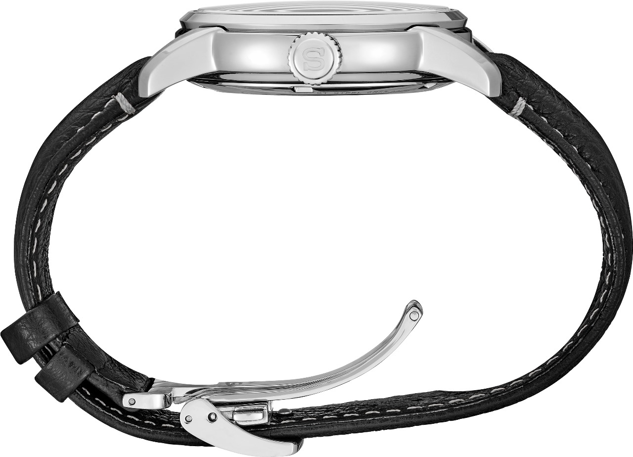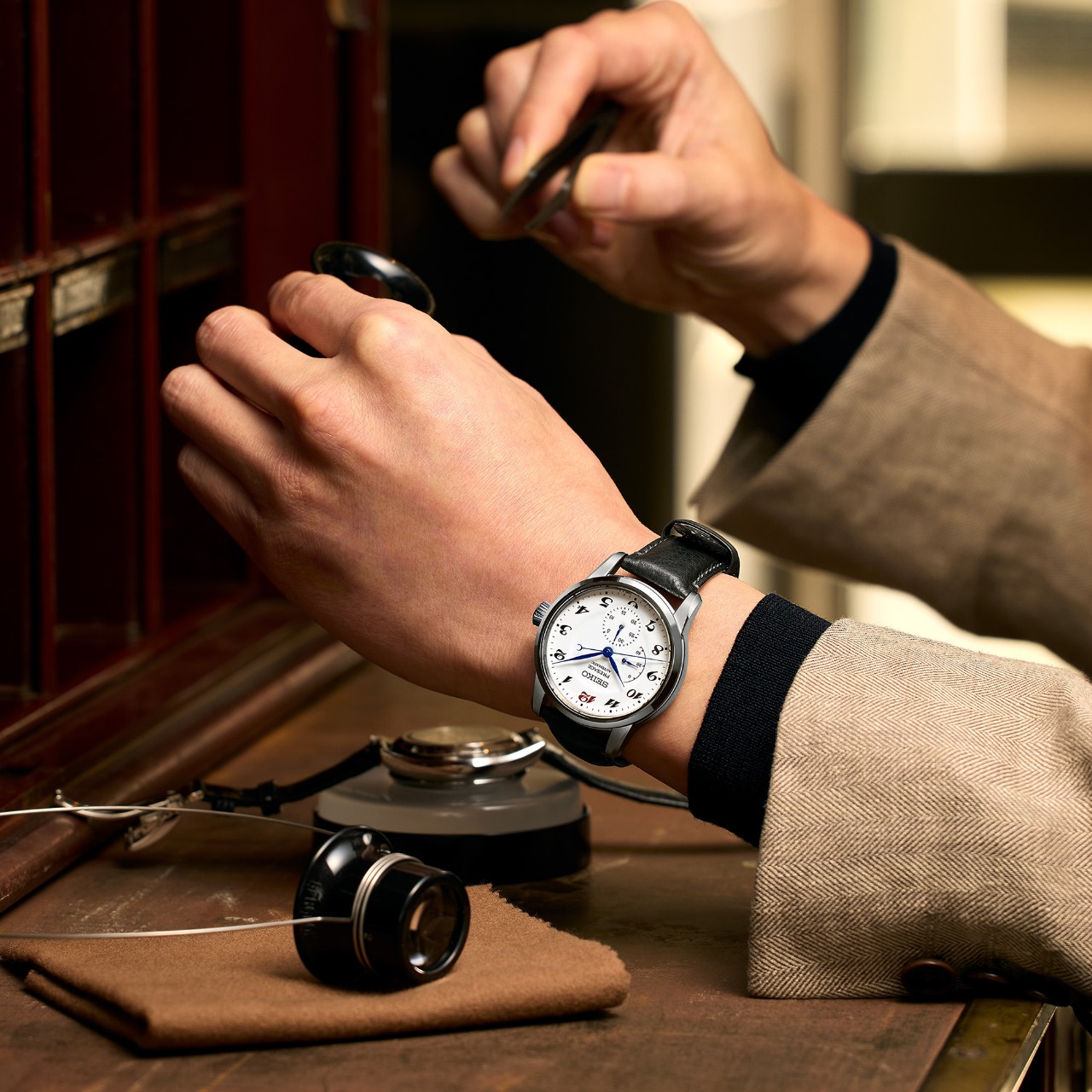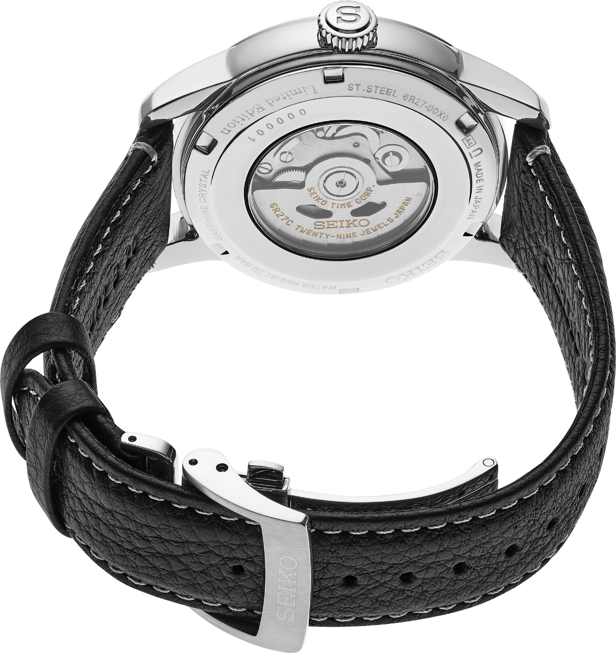 Seiko Watchmaking 110th Anniversary Limited Edition. To mark 110 years of watchmaking excellence, Seiko is highlighting its continuous dedication to evolving technology, as well as diversity, equality and the sustainable manufacturing necessary to meet environmental challenges. Part of a collection celebrating traditional Japanese crafts, this exquisite Limited Edition, available only in a controlled-production run of 1,500, extends the Presage tradition of blending precision technology with superior craftsmanship and design, offering the finest in Japanese mechanical watchmaking with a uniquely Japanese sense of beauty. Honoring enamel artistry, this elegant watch features a hand-crafted pure white enamel dial, ensuring a long-lasting finish while echoing the dial of the 1913 Laurel, Seiko’s – and Japan’s – first wristwatch, with the stylized Arabic numerals and red 12 o’clock index of the original, as well as a date subdial and power reserve indicator. Visible through the screwdown, see-through caseback, the 29-jewel automatic movement beats at a frequency of 28,800 vibrations per hour, with a power reserve of approximately 45 hours and manual winding capability. In stainless steel, with super-hard coating, this exceptional design includes a dual curved sapphire crystal with anti-reflective coating on the inner surface, tri-fold push button release clasp, and a dark brown sustainable leather strap, certified by the Leather Working Group (LWG). Packaged in a Limited Edition collectors’ box. 10 bar, 100M Water Resistant